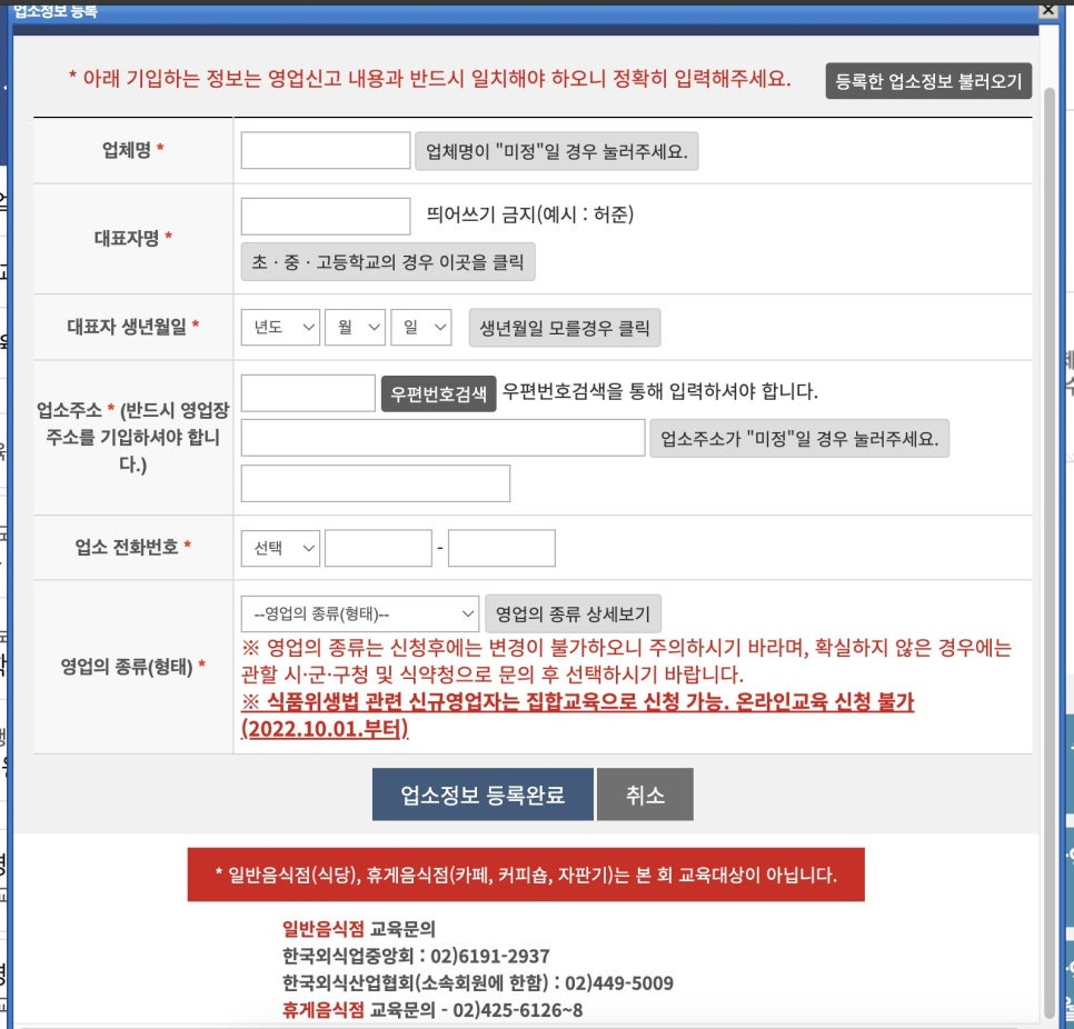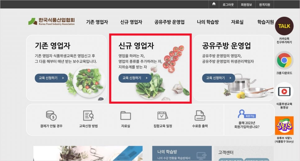물론 나는 일반음식점과 즉판업 둘 다 넣을거라 일반음식점은 이미 수료를 끝냈고 한국식품산업협회에서 하는 위생교육을 신청하려 하는 것.