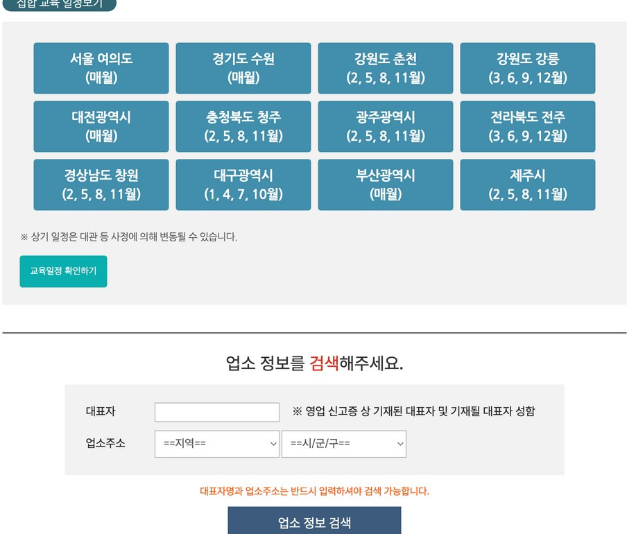 제주는 다가오는 교육이 11월이었어서 10월에 기다렸는데(아래 설명 보면 지역별 교육일정 안내가 있어요)