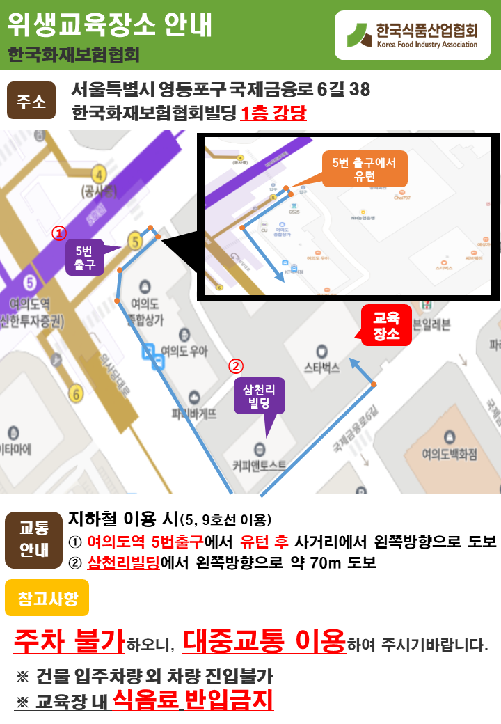 *위생교육은 각각 들어 수료증을 받아야 합니다.*
