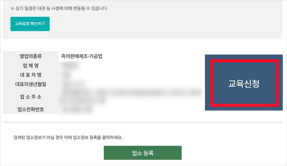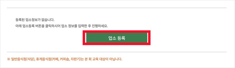 업소등록이 완료되었다면, '교육신청' 버튼을 누르세요.