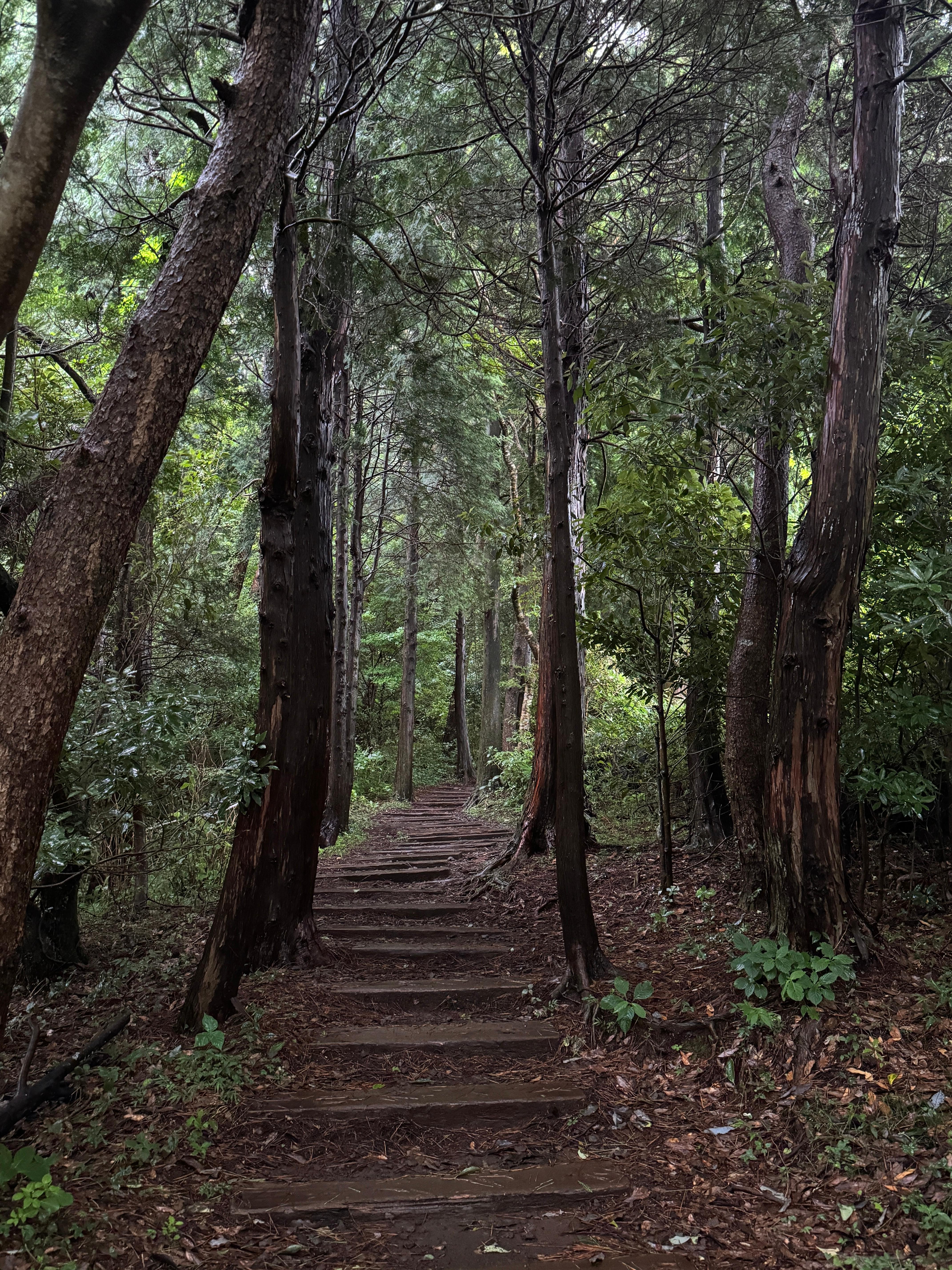 해발 508m, 정상까지 오르는 데에 단 30분 정도면 충분하다. 길이 잘 나 있어 험하지 않은 숲길을 따라 걷는 동안, 신비롭고 고요한 분위기에 빠져들었다. 아마도 비를 머금은 습한 안개가 있어서 더 그랬는지도 모르겠다. 정말 다행인 것은 빗방울이 떨어지진 않았다는 점.